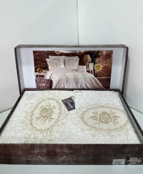 Покрывало - жаккард / комбинированный с велюром , с вышивкой и гипюром