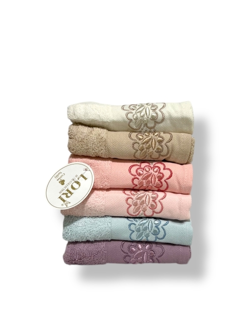 №6255 салфетка “ Sedef” Бренд: Lori / Karacan Тип: полотенца Состав: хлопок , махровые, с вышивкой Плотность: средняя Тип упаковки: прозрачный пакет В упаковке: 6 штук Рисунок: жаккарда Страна производитель: Турция Размер:30х50